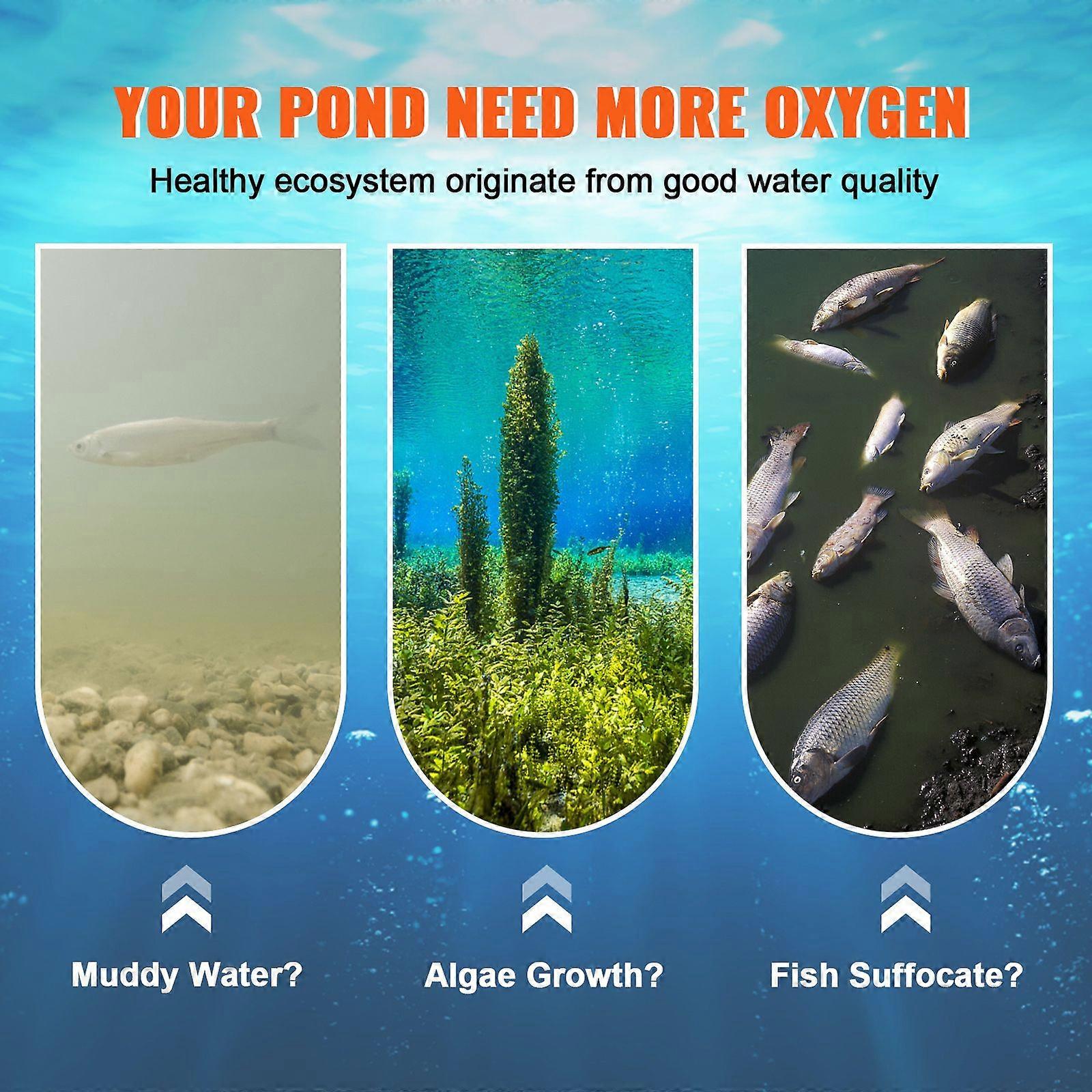 *Nøglefunktioner * Lad din dam trække vejret: Lider du af dam- og søproblemer relateret til overdreven algevækst, fiskedød og mukkeophobning? Nå, sig farvel til fortidens problemer! Vores dambelufter er designet til at reducere dammuck, forbedre vandkvaliteten, øge opløst ilt og beskytte fisk. Det vil hjælpe dig med at genoprette søer og damme naturligt. Gør dig klar til at forynge din dam og sø! * Kraftig og stille drift: Effekt: 550W; hestekræfter: 3/4 HK; Max. CFM: 5.2. Vores damluftningssystem har en effektiv oliefri luftkompressor, luftningsdamme op til 3 hektar, 50 fod dybe. Dine damme er ved at se helt nye ud i år! Gummikompressorophængene reducerer støj og vibrationer for en 65 dB lydløs, kontinuerlig og støjsvag drift. Der er heller ingen grund til at bekymre sig om arbejdseffektivitet. * Høj kvalitet og praktisk timer: Er du bekymret for at skulle stirre på din dam hele dagen? Gå videre og nyd de ting, du vil gøre! Damluftningssættet er udstyret med en timer, så du kan indstille åbnings- og lukketiden uafhængigt, hvilket sparer energi og forbrug. Du kan regelmæssigt justere beluftningssystemets arbejdstid i henhold til vejrforholdene, sikre nok ilt og beskytte motoren. * Fantastisk tilbehør: Denne sølufter leveres med en luftkompressor, to ruller 100ft højkvalitets slangeflyselskaber, to 10 "lufthulsdiffusorer med høj densitet og alle nødvendige fittings. Diffusoren er tung nok til at undgå væltning under vand. Slangen er lavet af EPDM, som er mere holdbar og modstandsdygtig over for høj temperatur end sort gummislange. Ventilerne, herunder overtryksventil, kontraventil og elektromagnetisk ventil, er alle designet til sikkerhedsbrug og forlænger motorens levetid. Gør dig klar til at blive forelsket i din dam igen! * Problemfri installation: Installationen kan ikke være nemmere takket være den klare brugervejledning. Vores damluftningssystem er holdbart, pålideligt og lav vedligeholdelse. Det foreslås at sætte kompressoren på et ventileret sted og beskyttet mod regn og solskin. Disse forholdsregler vil føre til mindre støv og forlænge maskinens levetid. ******************************************************************************************************* *Specifikationer Model: OLF400D-140BS-C Spænding: 220V Effekt: 3/4 HK/550 W Maks. CFM: 5,2 Max Dam Størrelse: 3 Acres Støjniveau: 65 dB Flyselskab størrelse: 100'x3/8"/30.5 m x 9.5 mm Diffusor Størrelse: 10"/25.4 cm Diffusor bundstørrelse: 18.8 x 11.5 "/ 35.1 x 29.2 cm Luftkompressorstørrelse: 8,9 x 6,3 x 8,5 tommer / 25,5 x 16 x 21,5 cm ******************************************************************************************************* *Pakcage indhold 1 x luftkompressor 2 x Non-stick diffusorer 2 x vægtet flyselskab 1 x timer 1 x Brugervejledning