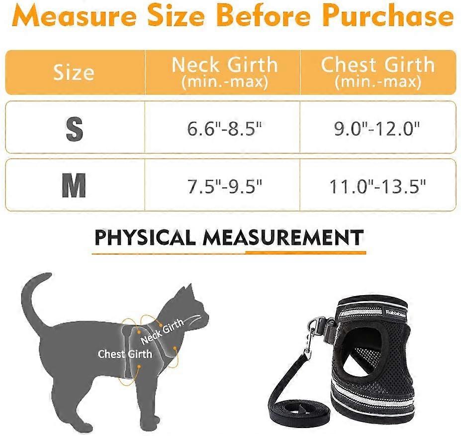 1. Bekväm kattsele: Den här riktigt bekväma kattungelen passar din katt perfekt, samtidigt som den håller honom/henne sval med sitt andningsbara luftnät. 2. Mjuk och lätt: lämplig även för små kattungar. Perfekt för dagliga promenader, jogging, träning och alla utomhusaktiviteter. Nyligen uppgraderad; nivå! Med säkerhetsspännen och starka magiska band garanterar denna kattsele säkerheten. Dessutom behöver föräldrar till husdjur inte oroa sig för att deras katt ska komma ut. 3. Mjuk och lätt vadderad konstruktion håller din katt i ultimat komfort under träning, det andningsbara meshtyget torkar snabbt och är idealiskt för alla typer av väder. 4. Quick Release: Det bakre frigöringsspännet är designat för enkel och enkel användning. Storlek: Halsomkrets: 16,7 cm-21,6 cm, bröstomfång: 22,9 cm-30,5 cm